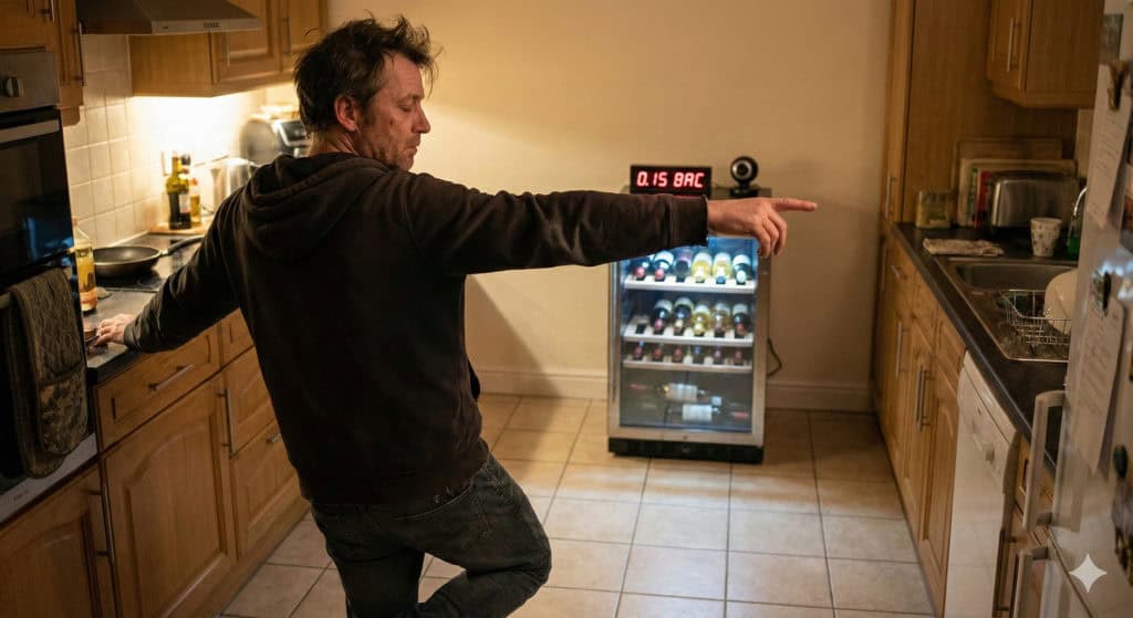 The entry level model of the cooler has a camera instead of the breathalyzer device. Usage is simple: Walk heel to toe towards the camera in a straight line, turn and then stand on one leg and spell out loud the Premier Crus from the 1855 classification. You are then allowed access to the medium price shelves.